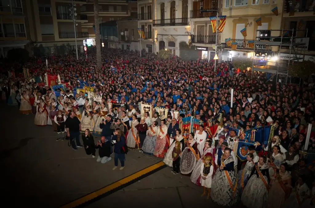 La Plaça Major volvió a convertirse en el epicentro del sentimiento fallero. Más de 5.000 falleros y falleras, junto a representantes de las 28 comisiones de la ciudad, vecinos y visitantes, llenaron el entorno de la Torre en una de las noches más multitudinarias y emotivas que se recuerdan.